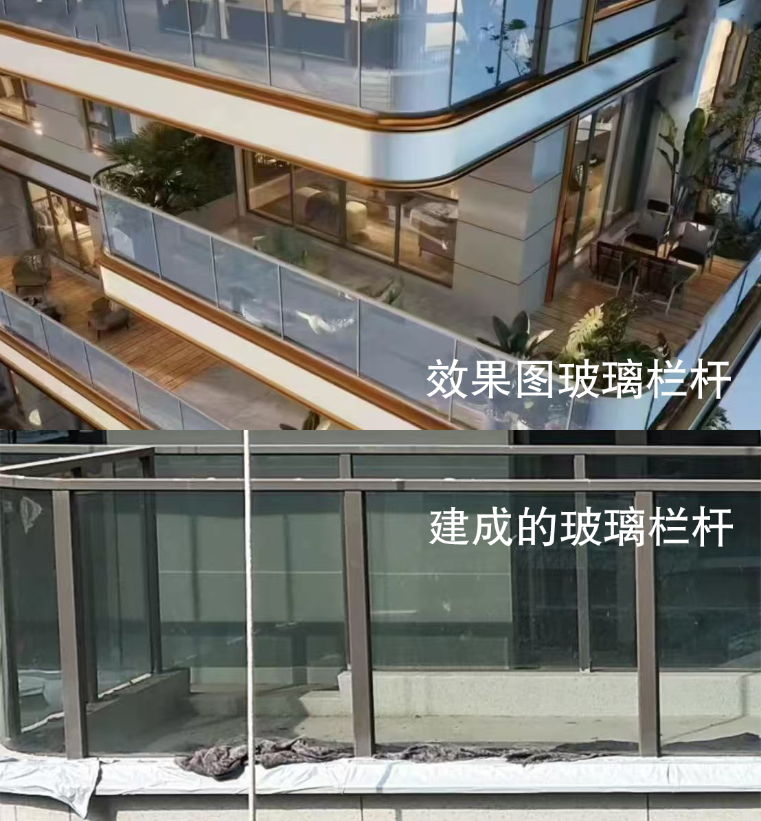 “样板间展示的是全玻璃栏杆,如今却变成粗糙的铁栏杆与玻璃组合,而且施工过程中已经多次出现爆裂现象,安装质量令人担忧。”在栏杆材质方面,业主张先生表达了忧虑。